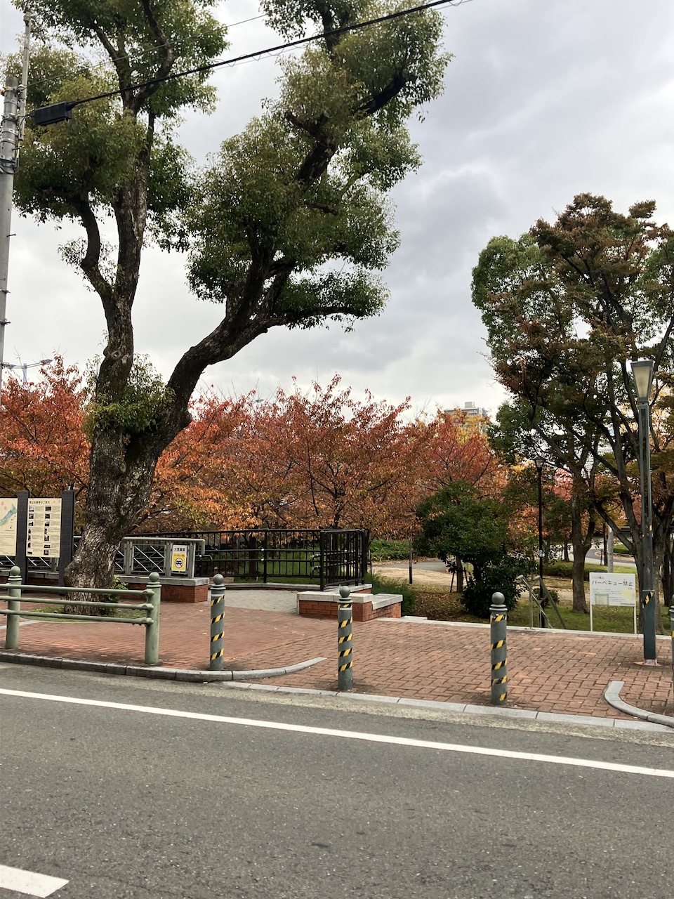 色付いた木々に灰色の空。たまらん